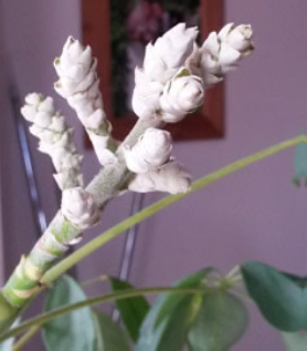What to do when a ARBICOLA starts blooming: Try to catch them when they are in the immature phase as they are messy when full blooming. It will come out of the new growth.