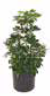 ![]() | Schefflera arboricola (Hawaiian or dwarf schefflera, Nora) | Dark green handshaped leafs, bush form (2-3’) or tree form (stem with head and often twisted trunks), column form | AB-2, C-3 Tree requires direct sun, bush can tolerate interior lighting. | Bush has upright stems, tree has more horizontal stems. Leaves grow from stem tip. Cut at node to shape. | Scale (often), spider mites, mealybugs, Trees are more susceptible to root rot. | Prune to prevent stretchiness, stems will grow too long. Be careful cleaning, leaves can be broken off. |